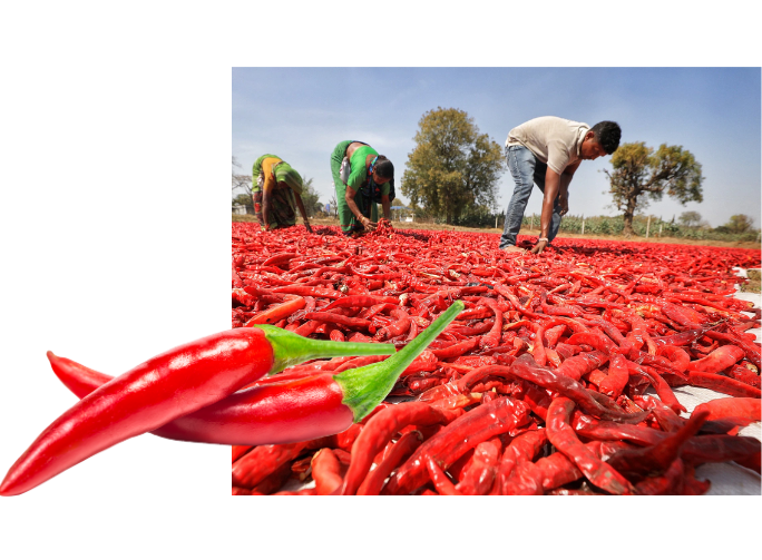 Our strong farmer network across Telangana, Andhra Pradesh, Karnataka, and Maharashtra ensures consistent quality, high color value, and strong pungency in every batch.